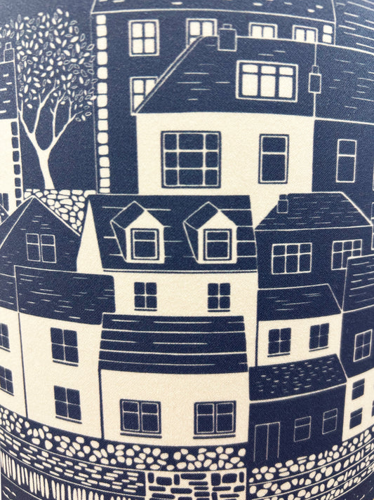 HOUSES BY THE SEA (muted mid blue & off white) Lampshade