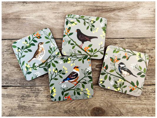 IN THE WOODS (British birds) Set of 4 square coasters - Cork back - Melamine coated