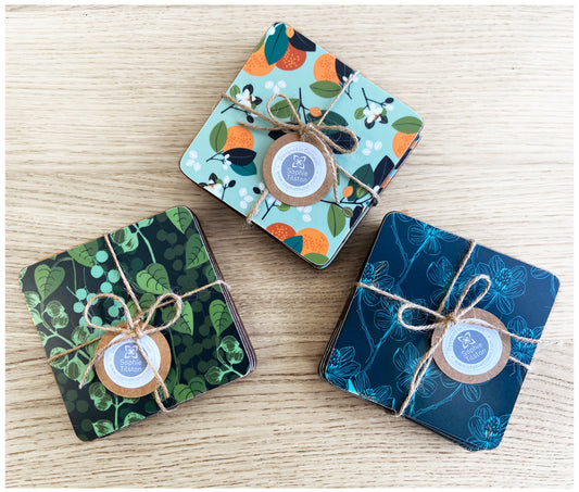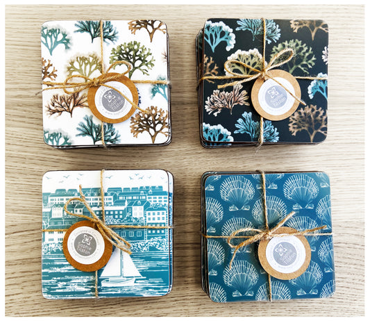 SEAWEED Set of 4 square coasters - Cork back - Melamine coated