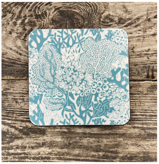 TIDE Set of 4 square coasters (pale teal blue) - Cork back - Melamine coated